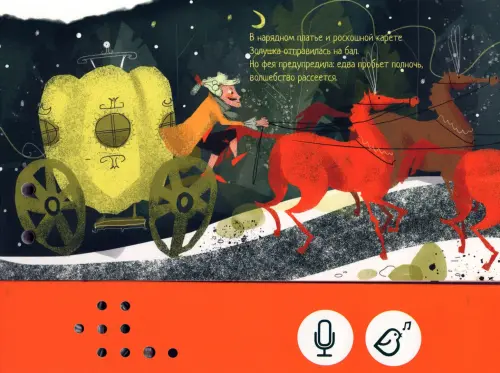 Книгадиктофон "Золушка" с яркими, современными иллюстрациями и звукозаписывающим модулем. Встроенный в книгу диктофон позволяет записать свой голос, читающий старую добрую сказку, чтобы ребенок в любой момент мог услышать историю, рассказанную родным голосом.