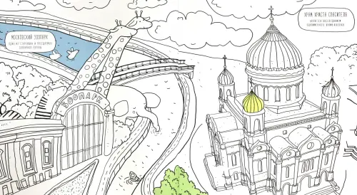 Вы можете познакомиться с любимым городом поближе, раскрасить его в новые цвета, вспомнить, как выглядят куранты на Спасской башне и что за высотка расположена возле московского зоопарка, где стоит памятник Петру Первому и как выглядит дружба народов, воплощенная в рисунке знаменитого одноименного фонтана. Внутри раскраски юные художники найдут не только легендарные виды столицы и зарисовки городских пейзажей, но и краткую информацию об основных достопримечательностях столицы.