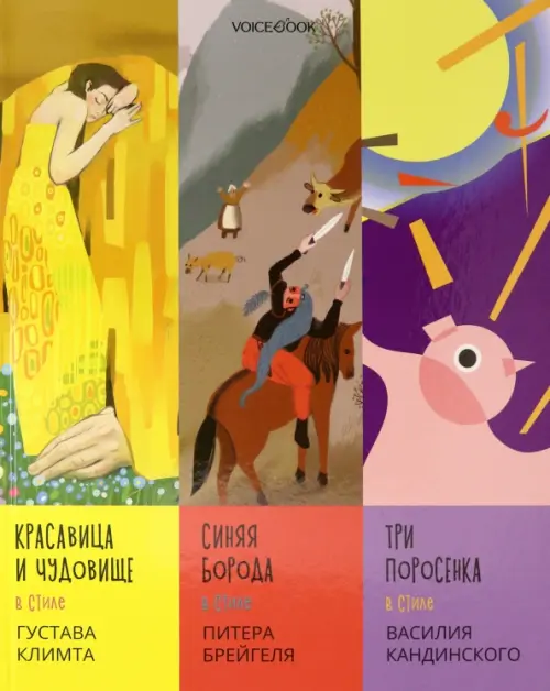 В альбом входят сказки – «Красавица и чудовище», выполненная в манере Густава Климта, «Синяя борода» в иллюстрациях а-ля Питер Брейгель и «Три поросенка», в иллюстрациях к которым творчески переработаны мотивы и орнаменты Василия Кандинского.