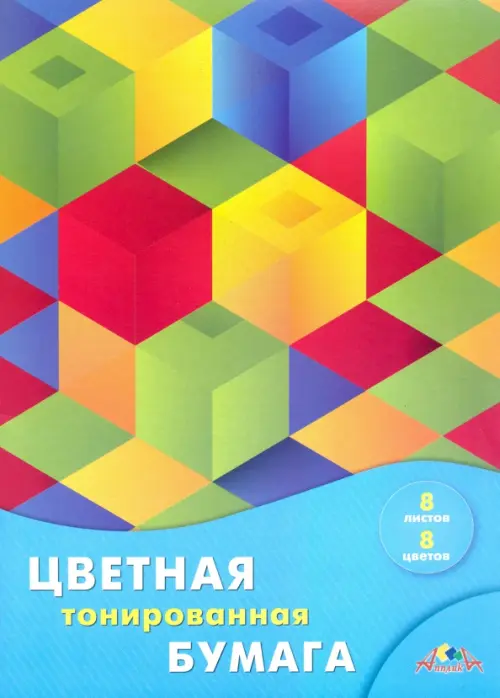 Цветная бумага "Разноцветные квадраты", тонированная, А4, 8 листов, 8 цветов