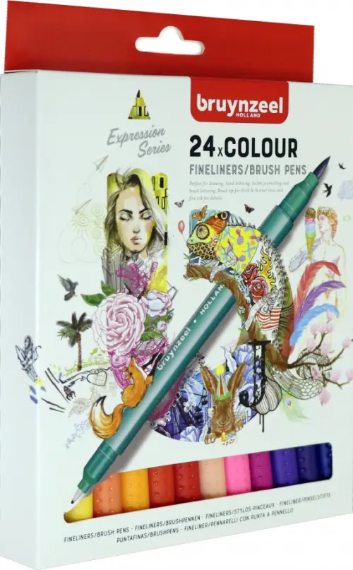 Набор двусторонних линеров Bruynzeel "Brushpen", 24 цвета