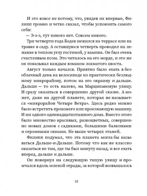 Каникулы одиннадцатилетнего Филиппа скучны, как панельные многоэтажки. Его родители вечно — ну просто вечно заняты. Однажды мальчик обнаруживает, что за его пыльным микрорайоном Четыре Ветра раскинулась земля Дальше-и-дальше.