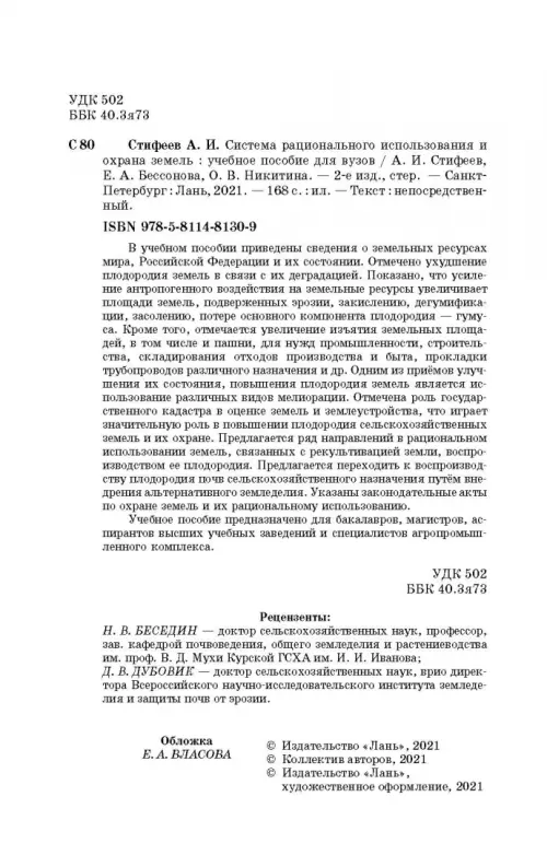 Если вы обнаружили ошибку в описании товара «Система рационального использования и охрана земель. Учебное пособие» (авторы: Бессонова Елена Анатольевна, Стифеев Анатолий Иванович, Никитина Оксана Владимировна), то выделите её мышкой и нажмите Ctrl+Enter. Спасибо, что помогаете нам стать лучше!