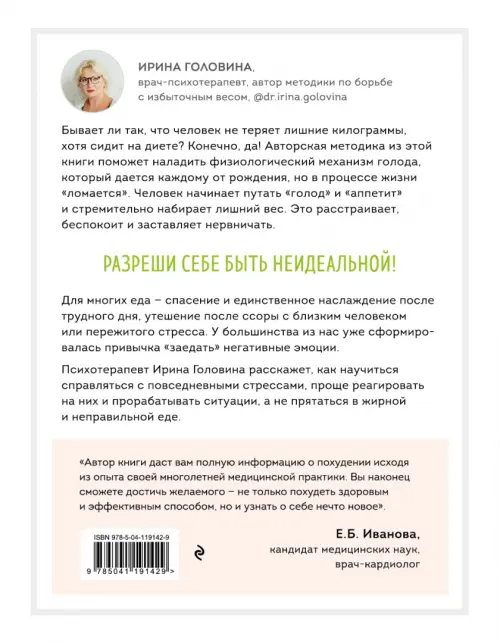 Многие из нас годами страдают от того, что ограничивают себя в еде, сидят на различных диетах. но так и не достигают заветных результатов. Правда ли, что можно не худеть, если следить за питанием? Да! Доктор Ирина Головина в своей книге раскрывает основные секреты защитных механизмов нашего организма, которые мешают нам скидывать лишние килограммы.