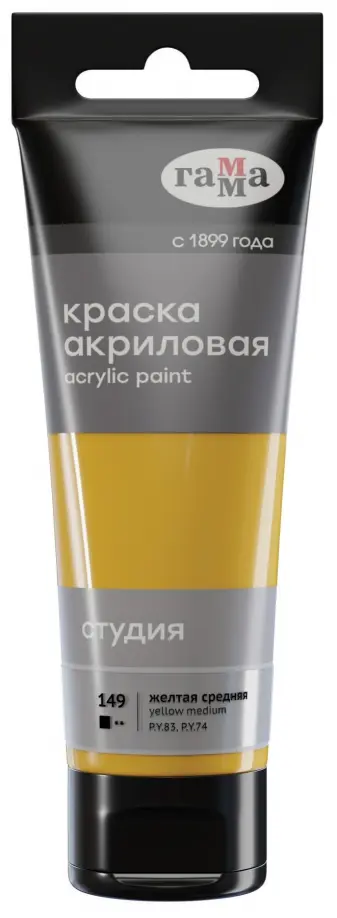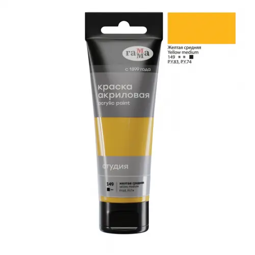 Краска акриловая "Студия", 75 мл, желтая средняя