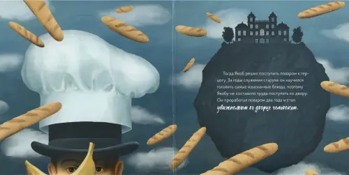 Вместе с героями сказки мы приглашаем вас в удивительный мир Магритта, где в небе парит человек без лица в костюме и котелке, иногда идет дождь из багетов, а нос вдруг превратится в столовую ложку в тарелке супа.