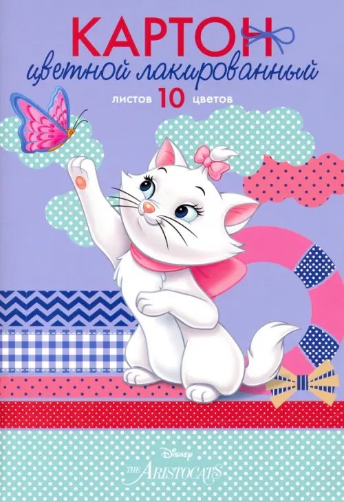 Картон цветной "Disney. Кошечка Мари", лакированный, А4, 10 листов, 10 цветов