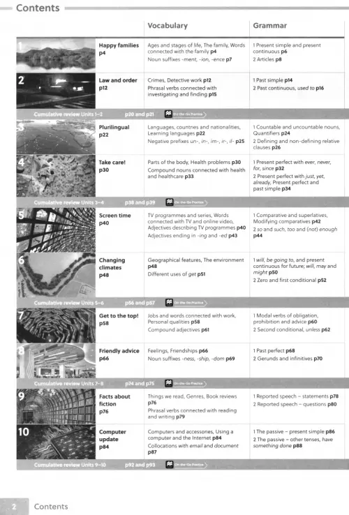 После каждого блока следует кумулятивный обзор с дополнительными заданиями.