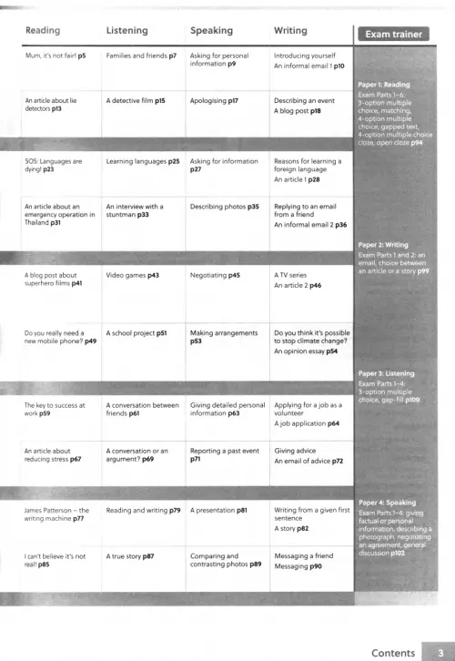 Cumulative review pages after every two units offer further revision. Great students tips give advice on study and exam techniques. The Digital Workbook includes the content of the print Workbook with fully interactive activities, audio and automated marking. Teachers can monitor students work using the Progress Tracker. The Exam Trainer is designed to familiarise students with exam tasks through extra practice and exam tips.