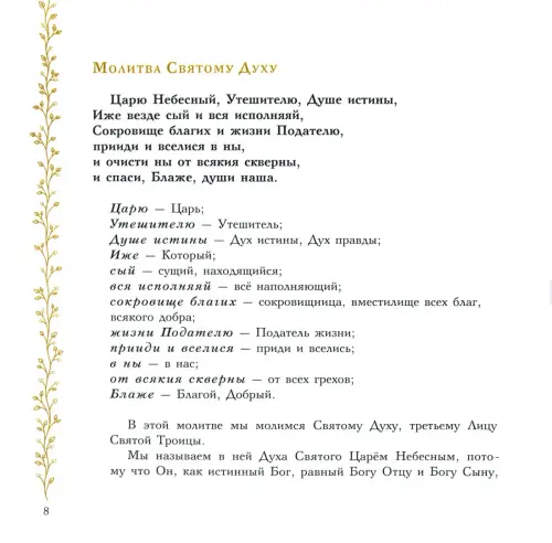 «Молитвослов» — замечательный подарок детям на любой христианский праздник. Книга содержит в себе тексты самых популярных молитв с подробным объяснением смысла и сюжета, а также переводы сложных для детей церковнославянских слов. «Молитвослов» призван дать маленькому читателю начальные навыки молитвы, зародить в нем интерес и любовь к Богу. Здесь вы найдете совершенно разные молитвы — краткие, начальные, на разные нужды в течение дня, сокращенные для восприятия ребёнка утреннее и вечернее молитвенные правила. В издание также включены некоторые молитвы из Постной и Цветной Триодей и те, которые читаются детьми перед Причастием, начиная с младшего школьного возраста. Тексты молитв сопровождаются волшебными иллюстрациями от Евгения Подколзина, которые не оставят равнодушным ни детей ни взрослых. Всё вместе это поможет читателю еще глубже проникнуть в суть молитв и молиться осознанно.