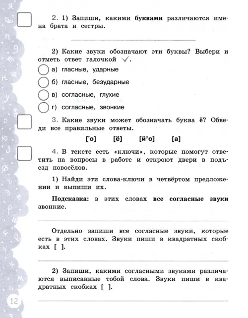 Тетрадь-тренажёр «Попади в десятку!» по русскому языку предназначена для самостоятельной работы учащихся 4 класса. Структура тетради, задания и вопросы, система проверки ответов, правила подсчёта баллов и анализ результатов обеспечивают именно самостоятельную работу ребёнка. Задача тетради — не просто дать возможность вспомнить и отработать изученный материал, но и сделать его востребованным в повседневной жизни школьника. Игровая форма работы мотивирует ребёнка продолжать выполнять задания (желание набрать больше баллов), развивает умение применять свои знания в нестандартных ситуациях, что является одним из шагов к успешному обучению в школе. Работа по тетради позволит проверить знания по русскому языку. В тетрадь-тренажер включены основные темы по русскому языку для начальной школы, а также интересные задания по фонетике, графике, орфографии, пунктуации; вопросы о значении и составе слов, упражнения на знание частей речи. Пособие могут использовать как родители, так и учителя для организации самостоятельной работы детей дома, индивидуальных занятий с обучающимися в течение учебного года, подготовки к ВПР, итогового обобщения изученного материала, проведения контрольно-диагностических работа В пособии есть задания базового и повышенного уровня сложности, выполнение которых направлено на реализацию ФГОС НОО.