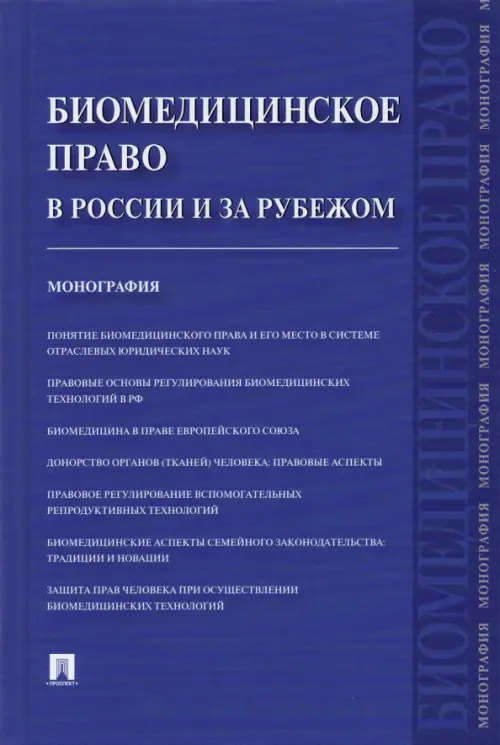 Работа имеет целью определить правовые основы биомедицинских исследований в Российской Федерации и за рубежом. Выделено понятие биомедицинского права и его место в системе отраслевых юридических наук. Самостоятельными объектами исследования стали: правовые основы донорства органов (тканей) человека, генетических и вспомогательных репродуктивных технологий, этической экспертизы биомедицинских исследований и др. Работа включает в себя анализ российского законодательства, международных правовых актов, директив Европейского союза, этических документов профессиональных медицинских организаций.