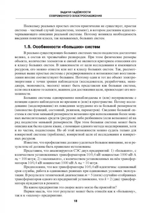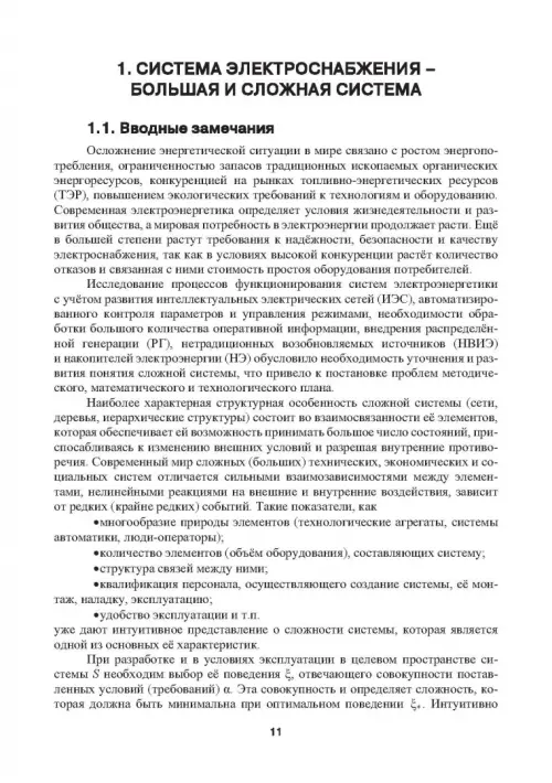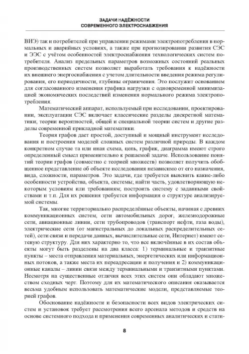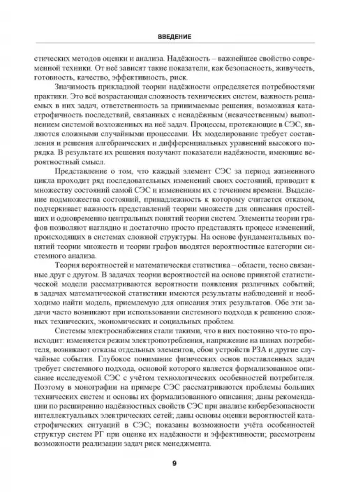 Изложены основы системного подхода к анализу современных систем электроснабжения (СЭС). Приведены основные определения, необходимые для понимания и оценки сложности СЭС. Рассмотрен математический аппарат, используемый для решения задач создания, эксплуатации и развития СЭС. Дано формализованное описание современных СЭС, отмечена необходимость расширения понятия «надежность», рассмотрены вопросы кибербезопасности. Особое внимание уделено задачам оценки надежности и эффективности структур СЭС с учетом развития систем распределенной генерации. Даны рекомендации по оценке вероятностей катастрофических ситуаций и вопросам, связанным с оценкой и управлением риском при обеспечении надежности СЭС.
