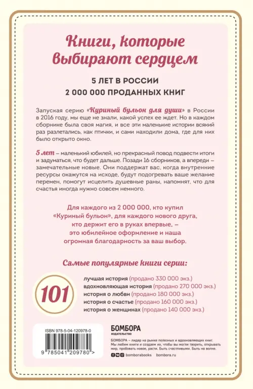Книги, которые помогут разобраться в себеЕсли вы обнаружили ошибку в описании товара «Куриный бульон для души. 101 история о животных» (авторы: Хансен Марк Виктор, Кэнфилд Джек, Клайн Кэрол, Беккер Марти), то выделите её мышкой и нажмите Ctrl+Enter. Спасибо, что помогаете нам стать лучше!