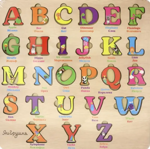 Во-первых, деревянная доска с английскими буквами, в виде деталей пазла, позволяет лучше развить мелкую моторику рук. Благодаря скругленным углам всех элементов, ребенку безопасно и удобно брать и вставлять буквы в сортер.