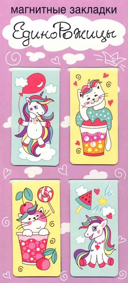 Страна единорогов. Раскраски, блокноты и наклейкиЕсли вы обнаружили ошибку в описании товара «Закладки магнитные ЕдиноРожицы, 35х70 мм, 4 штуки», то выделите её мышкой и нажмите Ctrl+Enter. Спасибо, что помогаете нам стать лучше!