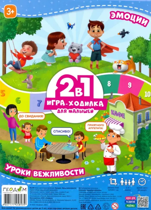 Игра-ходилка с фишками для малышей 2 в1. Эмоции + Уроки вежливости