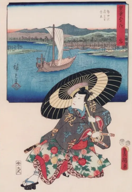 Серия гравюр "53 станции Токайдо, исполненная двумя мастерами".
