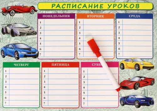 Расписание уроков "Машины". Дополнительные занятия. Меры величин. Планшетное издание с маркером.