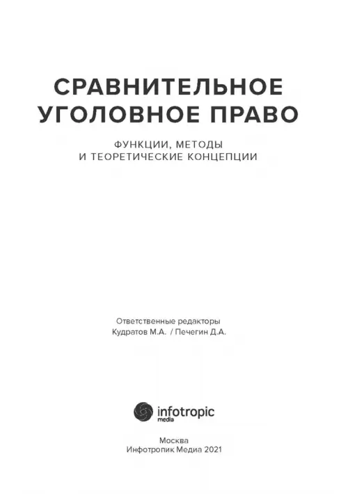 Если вы обнаружили ошибку в описании товара «Сравнительное уголовное право. Функции, методы и теоретические концепции» (авторы: Кудратов М., Печегин Денис Андреевич, Эзер Албин), то выделите её мышкой и нажмите Ctrl+Enter. Спасибо, что помогаете нам стать лучше!