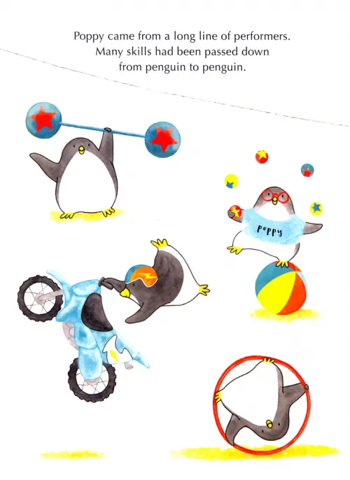 Poppy the Penguin comes from a long line of circus performers. Many skills have been passed down from penguin to penguin. However, Poppy feels that performing in the family circus might not be for her. But the hardest thing is not juggling, or riding a unicycle - it's telling her mum that she doesn't want to perform any more. The bravery is worth it when Poppy discovers a role more suited to her - organising and coordinating the whole show. And what a show it turns out to be!