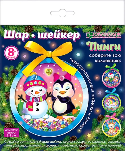 "Пинги" - искрящийся шар-шейкер, уникальное украшение-игрушка со стилизованным изображением празднующих наступление зимы снеговичка и пингвинчика.