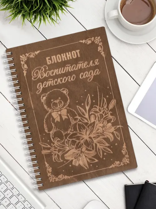 Блокнот деревянный на спирали "Воспитателя детского сада", 148х210 мм