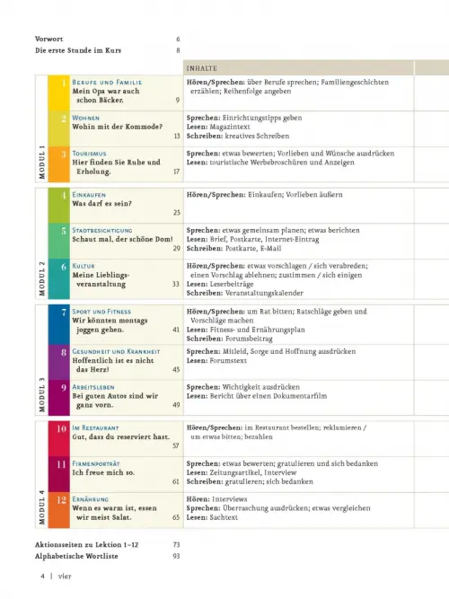 - modularer Aufbau: jedes Modul besteht aus drei kurzen Lektionen und vier zusätzlichen Modul-Plus-Seiten