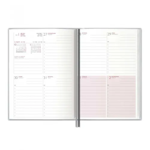 Особенности: клапан-закладка, планирование на 13 месяцев, съёмная обложка.