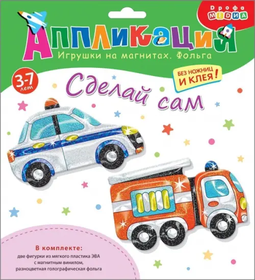 Игрушки на магнитах с фольгой. Пожарная и полицейская машины