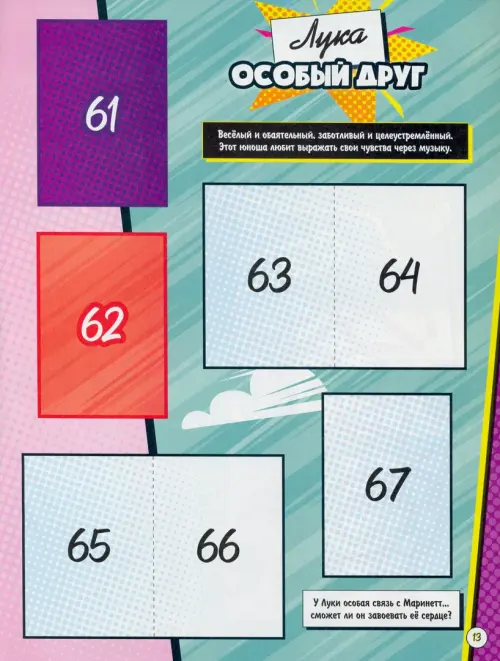 Альбом, 32 страницы — место для хранения наклеек, посвящен главным героям сериала «Леди Баг и Супер-кот». Знатоки найдут неопубликованную ранее информацию и проверить свои знания о супергероях, их квами, способностях и особенностях. Маринет на первый взгляд самая обычная девочка, которая учится в школе, но на самом деле она обладает невероятными способностями! Превращаясь в супергероиню по имени Леди Баг, она спасает Париж от злодея Бражника. Защищать родной город ей помогает союзник — Супер-Кот. Маринет не подозревает, что под маской героя скрывается ее одноклассник Адриан, в которого девочка уже давно влюблена.