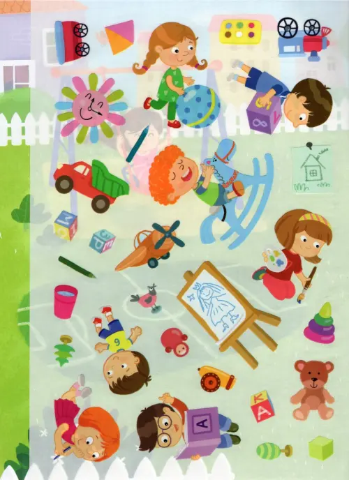 В нашем детском садике просто некогда скучать! Здесь так много игрушек - можно играть и в группе, и на площадке на улице! На занятиях можно научиться рисовать, выучить буквы и подготовиться к школе. И конечно тут много друзей! Приходи и ты в наш детский сад. Приклеивай игрушки и ребятишек, придумывай разные истории. Наши наклейки многоразовые, поэтому можно фантазировать сколько угодно и приклеивать картинки снова и снова!