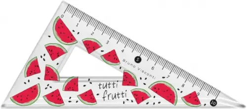 Линейка-треугольник "Fresh and fruity" из коллекции "Happy Graphix". Это удобный и качественный инструмент для черчения, украшенный ярким принтом из арбузов. Изготовлена из нетоксичного прозрачного пластика. Шкала с разметкой нанесена тиснением и не сотрется. Это компактная линейка с длиной разметки 10 см, которая поместится в стандартный школьный пенал. По измерительной стороне линейки есть фаска. Это поможет ребенку точно приложить треугольник и прочертить ровную линию.