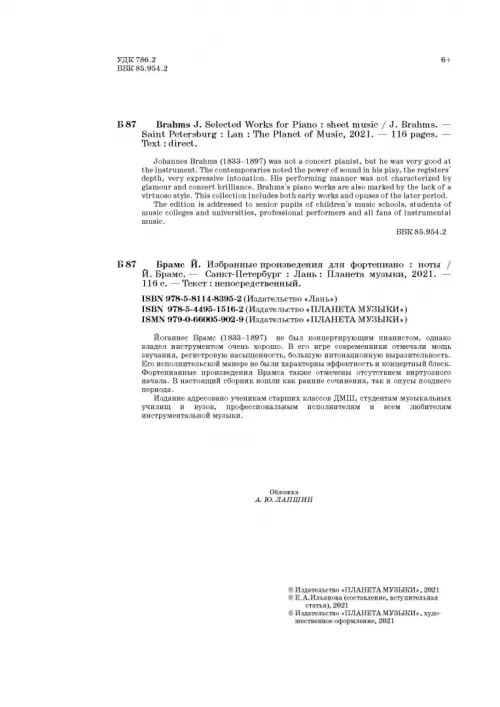 Если вы обнаружили ошибку в описании товара «Избранные произведения для фортепиано. Ноты» (авторы: Брамс Йоганнес), то выделите её мышкой и нажмите Ctrl+Enter. Спасибо, что помогаете нам стать лучше!