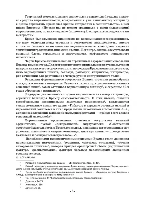 Йоганнес Брамс (1833–1897) не был концертирующим пианистом, однако владел инструментом очень хорошо. В его игре современники отмечали мощь звучания, регистровую насыщенность, большую интонационную выразительность. Его исполнительской манере не были характерны эффектность и концертный блеск. Фортепианные произведения Брамса также отмечены отсутствием виртуозного начала. В настоящий сборник вошли как ранние сочинения, так и опусы позднего периода. Издание адресовано ученикам старших классов ДМШ, студентам музыкальных училищ и вузов, профессиональным исполнителям и всем любителям инструментальной музыки.