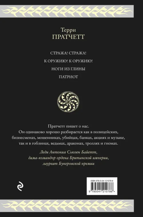 Значит, так. Анк-Морпорк - это вам не какая-нибудь овцепикская глушь! Тут все сплошь цивилизация. Здесь продают сосиски в тесте, грабят и убивают (причем иногда без лицензии!), шутят и баламутят, химичат и магичат. Ясное дело, бывают и непорядки. Вот на этот случай тут и есть Стража. Работа не пыльная, с возможностями продвижения по службе, но в ней имеются свои профессиональные секреты. Во-первых, следует научиться бегать не слишком быстро (а то еще, чего доброго, догонишь). Во-вторых, требуется усвоить основной принцип выживания в уличных драках - вообще не участвовать в таковых. В-третьих, кричать "Все спокойно!" надо не слишком громко, иначе могут услышать. Зато работа в Анк-Морпоркской Страже открывает просто фантастические возможности. Во всех смыслах. Встречайте четыре первых романа о Страже Плоского мира: "Стража! Стража!", "К оружию! К оружию!", "Ноги из глины" и "Патриот".