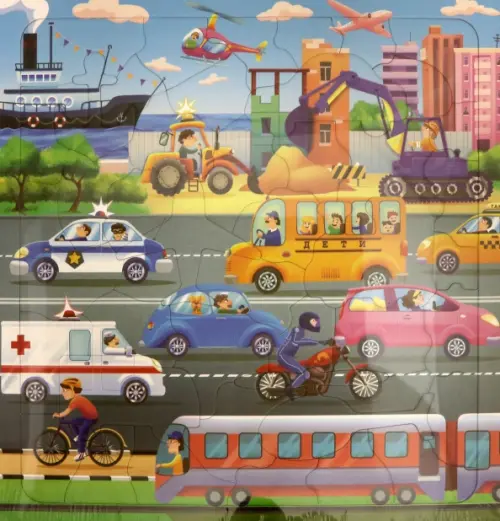 Пазл фигурный на подложке. Транспорт, 45 элементов