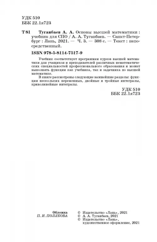 Если вы обнаружили ошибку в описании товара «Основы высшей математики. Часть 3. Учебник для СПО» (авторы: Туганбаев Аскар Аканович), то выделите её мышкой и нажмите Ctrl+Enter. Спасибо, что помогаете нам стать лучше!