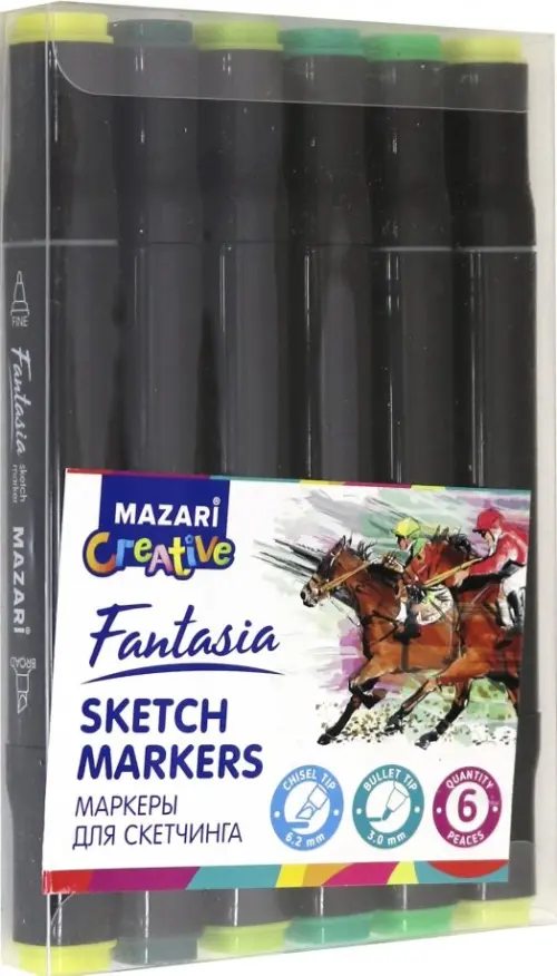 Набор маркеров для скетчинга, двусторонние "Fantasia", 6 цветов, 6 штук, зеленые цвета