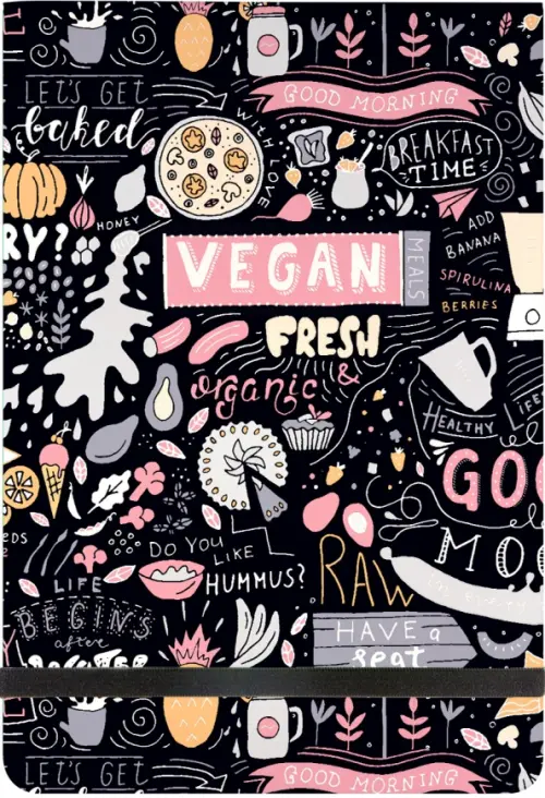 Удобная фиксирующая резинка черного цвета надежно удерживает блокнот в закрытом виде.