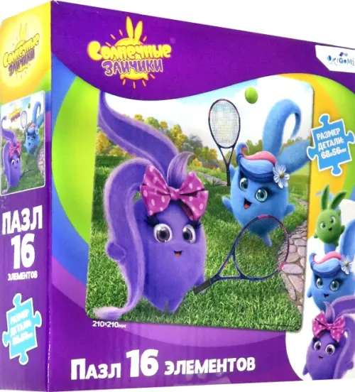 Пазл из 16 элементов, основанный на любимых сюжетах мультфильма "Солнечные зайчики" понравится любому ребенку, а сборка яркой картинки принесет радость не только малышам, но и их родителям.