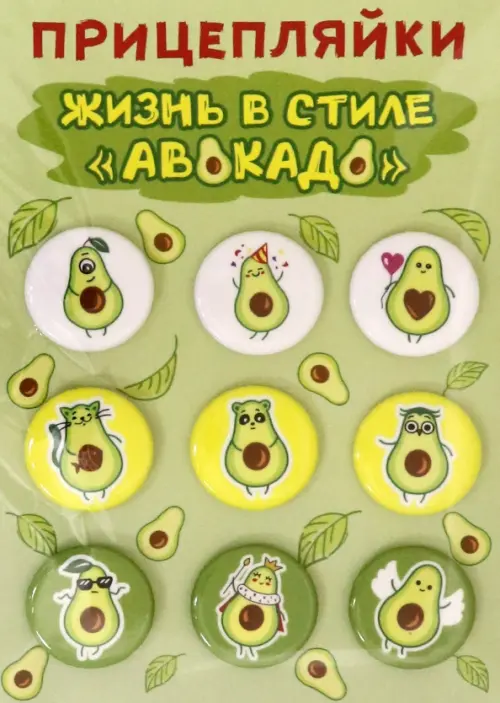 Набор значков закатных "Прицепляйки. Жизнь в стиле авокадо", 25 мм, 9 штук