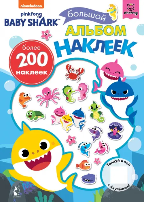 Весёлый Акулёнок и его друзья зовут тебя поиграть! Танцуй, пой забавную песенку и украшай наклейками из этого ОГРОМНОГО альбома свои блокноты, тетради и рисунки. Ду-ду-ду-ду!