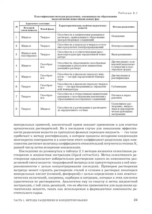 Рассмотрению отдельных методов разделения и концентрирования аналитов предпослана их общая классификация, а рассмотрение методов в рамках отдельных групп, выделяемых согласно этой классификации, начинается с внутригрупповых классификаций, что позволяет легко сориентироваться во всем многообразии методов разделения, увидеть взаимосвязь между ними и подходы к выбору адекватных решений различных аналитических задач.