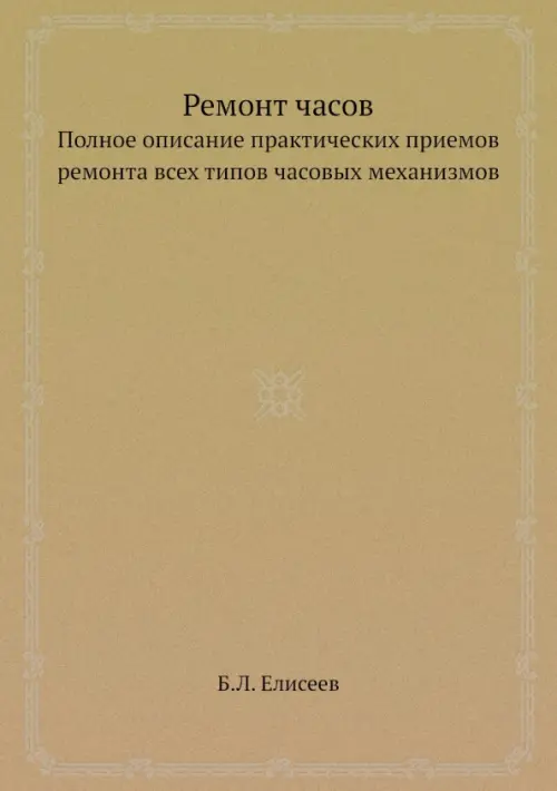 В книге впервые дано полное описание практических приемов ремонта всех типов часовых механизмов, включая их наиболее перспективные модификации. Приведены необходимые минимальные сведения по устройству часов, а также теоретические обоснования, способствующие квалификационному совершенствованию качества работы мастера. Наряду с традиционными излагаются новые и перспективные методы ремонта. Рекомендуются необходимые инструменты и приспособления. В отдельном разделе книги даны полезные советы часовому мастеру. Книга является практическим руководством как для квалифицированных мастеров, так и для обучающихся профессии часовщика; она представляет большой интерес для читателей, имеющих элементарные навыки по ремонту и желающих устранить отдельные неисправности часов самостоятельно.