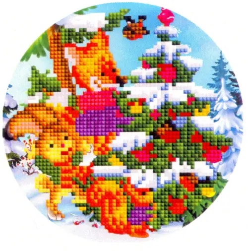 Алмазная мозаика "Встреча зверят", 18 см, 20 цветов