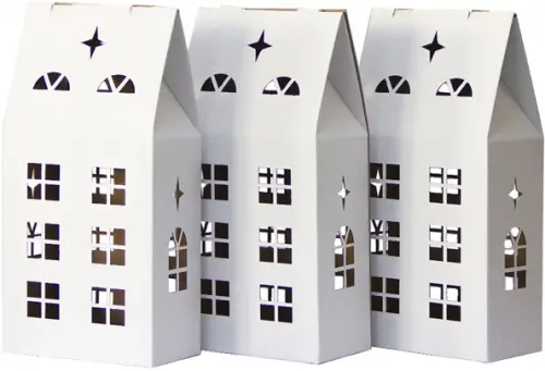 Комплект новогодних домиков с подсветкой предназначен для праздничного оформления интерьера, например, пространства под елкой. Фигурные домики с окошками напоминают сказочный город из детских грез. Необычные новогодние украшения в виде домиков можно раскрасить, расписать добрыми пожеланиями, украсить аппликацией из фольги, мишуры. Домики из плотного картона не только красивы, но и вместительны, при желании в них найдется место и для подарков. Светодиодная гирлянда эффектно подсветит домики, создаст ощущение таинственности и предвкушение наступающего праздника.