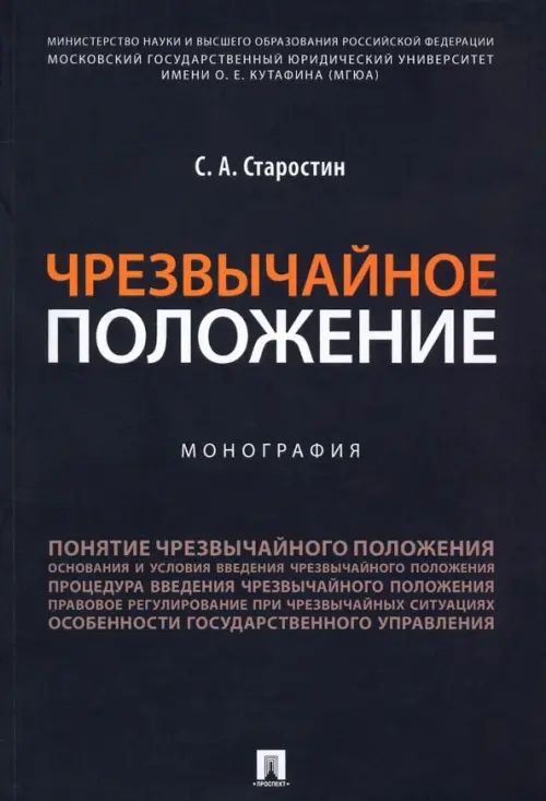 Если вы обнаружили ошибку в описании товара «Чрезвычайное положение. Монография» (авторы: Старостин Сергей Алексеевич), то выделите её мышкой и нажмите Ctrl+Enter. Спасибо, что помогаете нам стать лучше!