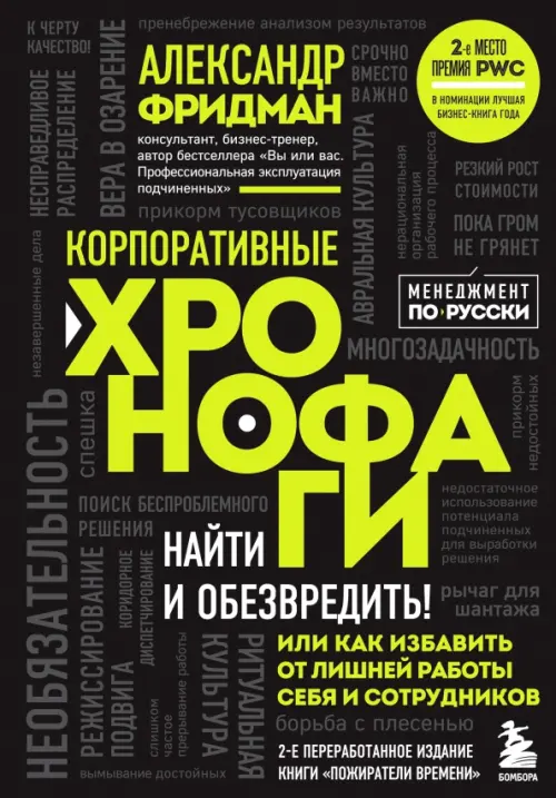 Хронофаги — пожиратели времени, порочные бизнес-процессы, которые негативно влияют на действия сотрудников и работу всей компании. Хорошего руководителя отличает способность выявлять хронофаги и своевременно блокировать их. В этой книге Александр Фридман, консультант и бизнес-тренер, рассказывает про 34 типа корпоративных пожирателей времени. Он предлагает подходы, которые помогут сделать механизм управления процессами и сотрудниками более эффективным и прозрачным.