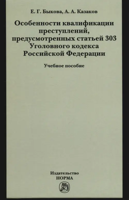Если вы обнаружили ошибку в описании товара «Особенности квалификации преступлений, предусмотренных статьей 303 Уголовного кодекса Российской Федерации. Учебное пособие» (авторы: Быкова Елена Георгиевна, Казаков Александр Алексеевич), то выделите её мышкой и нажмите Ctrl+Enter. Спасибо, что помогаете нам стать лучше!